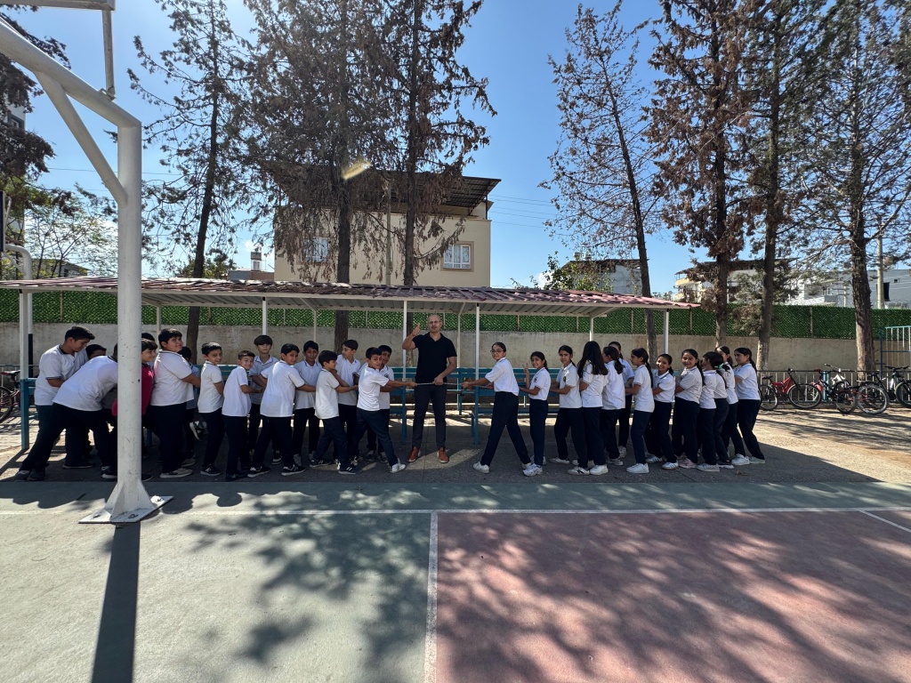 Fen bilimleri dersinde “Aynı doğrultulu Zıt yönlü kuvvetlerin Bileşkesi” konusunu anlamak amacıyla halat çekme yarışı yapıldı